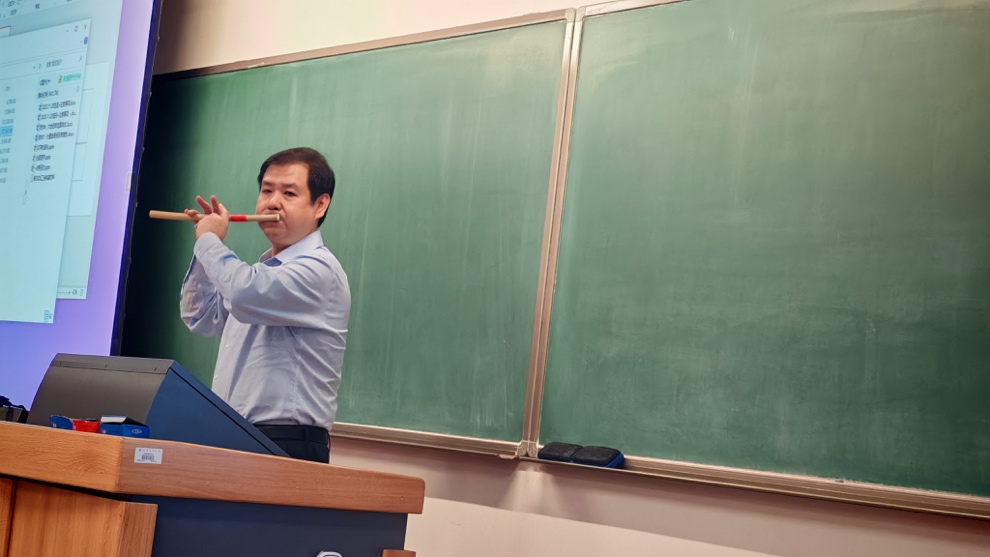 讲座中,何源老师以“葫芦丝艺术中的多彩民族文化展现”为主题,引领听众进行了一次深入云南风土人情的音乐之旅。他生动讲解了葫芦丝作为云南少数民族代表性乐器的文化根源与发展脉络,带领同学们感受那片土地特有的民族风情与艺术灵气。更为难得的是,何老师现场演绎了多首优美动听的经典乐曲以及他个人创作的葫芦丝作品,充分展现了葫芦丝传统音色的独特魅力及其在传承民族文化中的深厚底蕴。