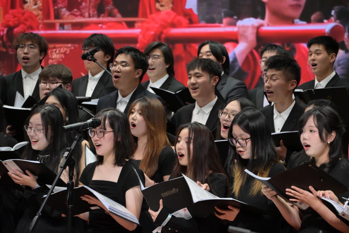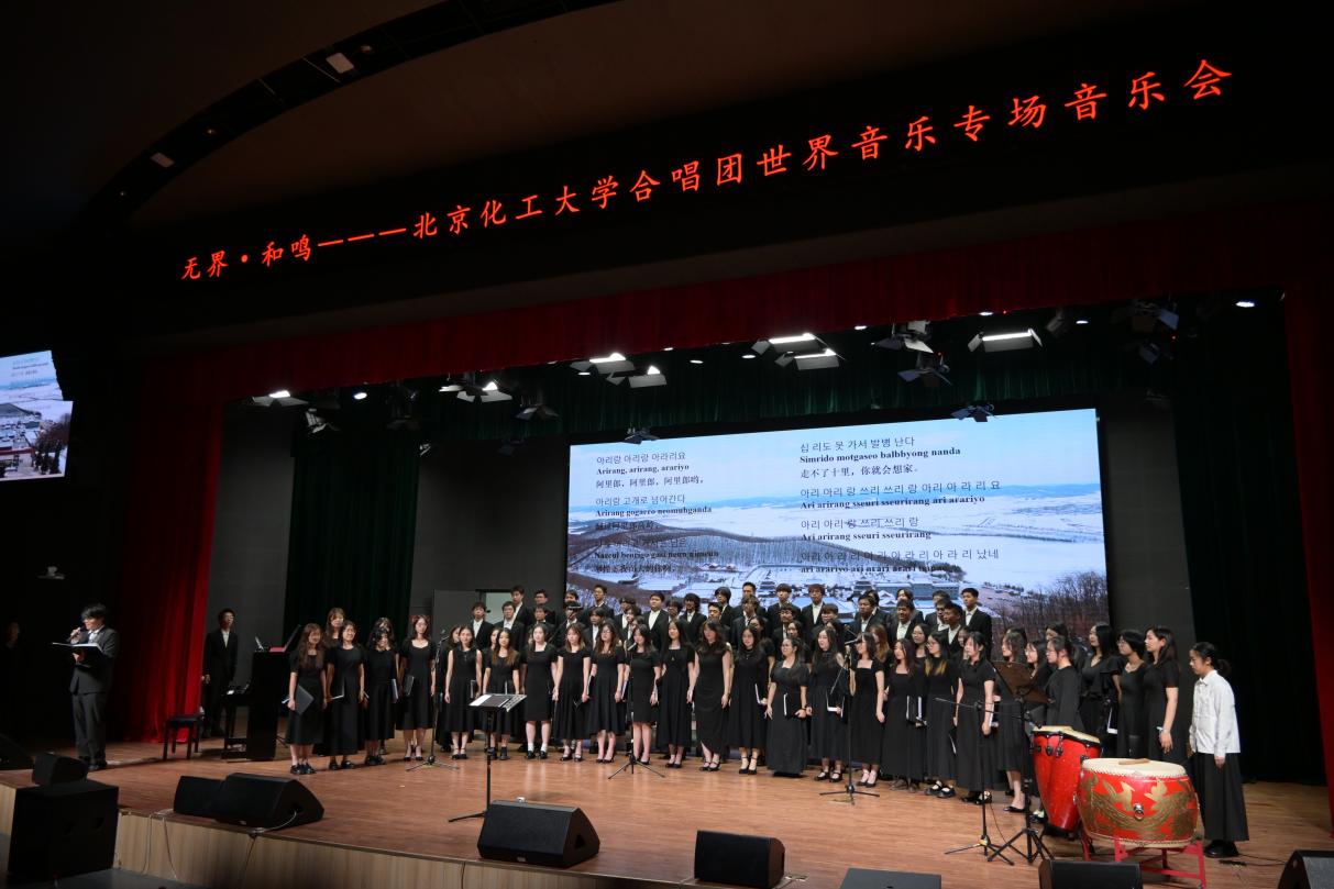 发布时间:2025-12-17 08:51:3012月6日晚,“无 界・和 鸣” 世界音乐专场音乐会暨公共艺术部教学成果展在昌平校区大学生活动中心小剧场成功举办。北化合唱团携手北京警察学院男声合唱团,共同为师生们带来了一场跨越国界、风格多元的音乐盛宴。音乐会以 “无 界・和 鸣” 为主题,曲目兼顾经典声乐作品与影视配乐、民族民谣等形式,用意大利语、英语、德语等8种语言演唱,为现场观众带来独特听觉体验,展现了我校艺术教育成果与学生艺术团体的专业实力。