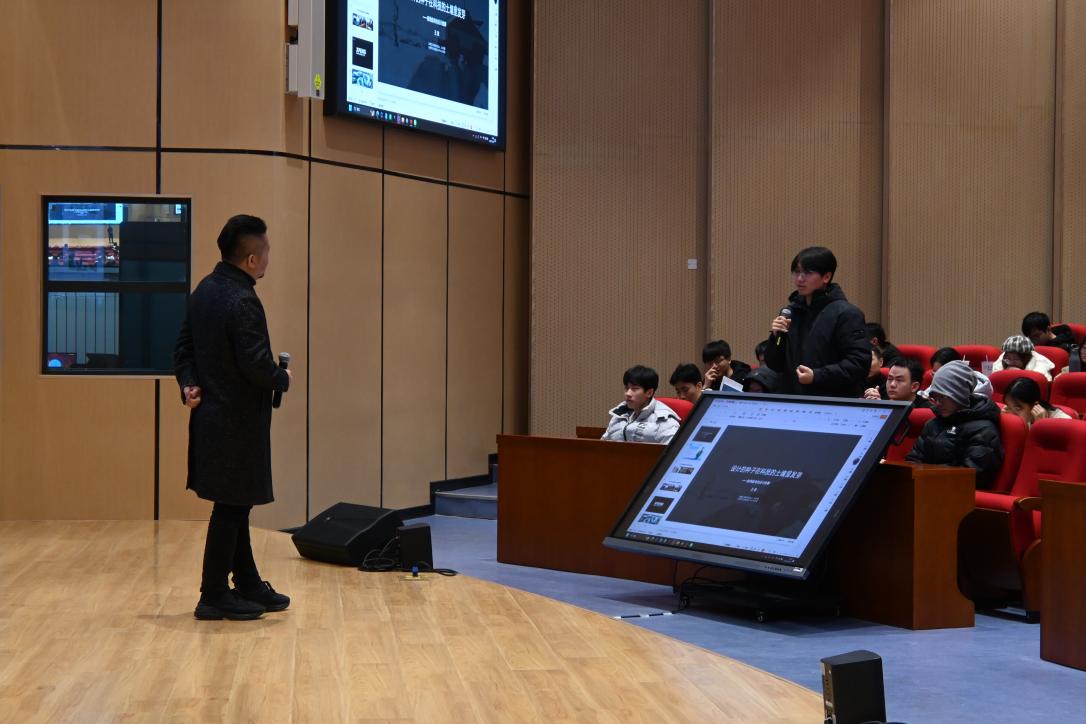 在交流环节,与会师生踊跃提问,问题涵盖材料选择、结构设计、人工智能对设计行业的影响以及产品市场化策略等多个维度。王谭教授逐一予以细致解答,并鼓励在场学生夯实专业基础、拓展跨界视野,培养面向未来的综合创新能力。